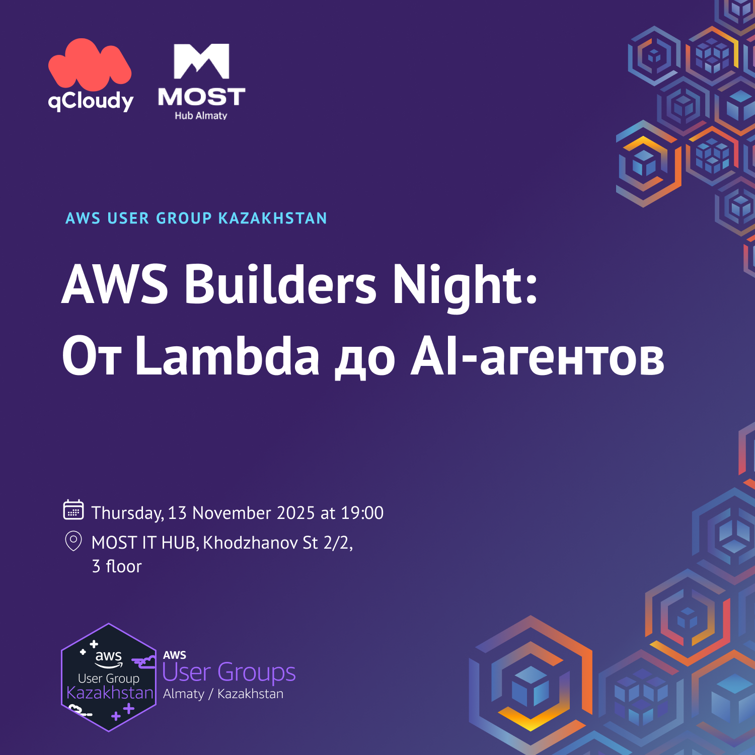 Присоединяйтесь к ноябрьскому митапу AWS User Group Almaty — вечернему событию для инженеров, архитекторов и AI-энтузиастов, обсуждающих реальные кейсы, новые подходы и развитие AWS-технологий в Казахстане.